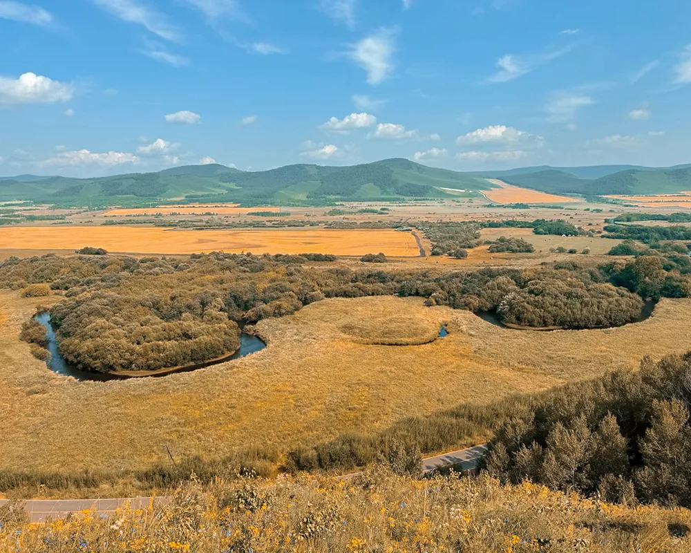 08:00 早餐后出发,抵达小众秘境【风之谷】,途径【笑脸河】,沿途起伏如北欧风情的草原上有东北独有树种【白桦林】,一片白色树木美如童话;