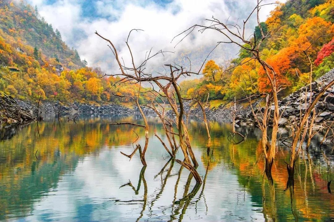 当九寨沟王者归来,却因限流抢不到票的时候,不如去松坪沟,让它来填满你对秋色山水的想象。
