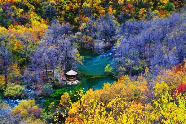 当秋天的风拂过,这里开始变得五彩斑斓,彩林似火,相映成趣,它在大自然的勾勒下,开始作出一幅精妙的油画,步步皆是景。